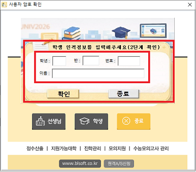•     학생 개인번호가 일치할 경우